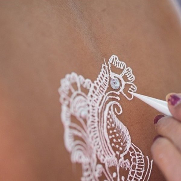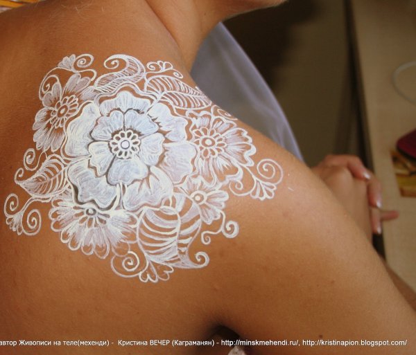 ![Белое мехенди на спине]()