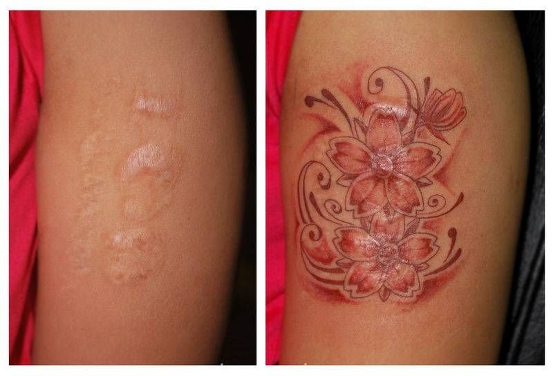 ![Перекрытие шрамов татуировкой]()