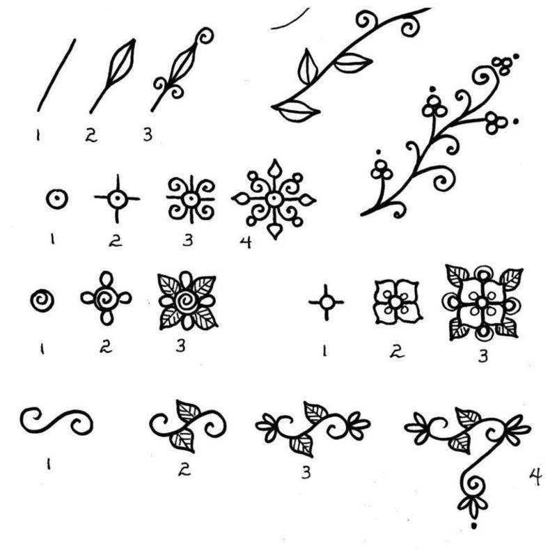 ![Узоры мехенди эскизы для начинающих пошагово]()