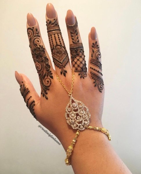 ![Мехенди на пальцах рук]()