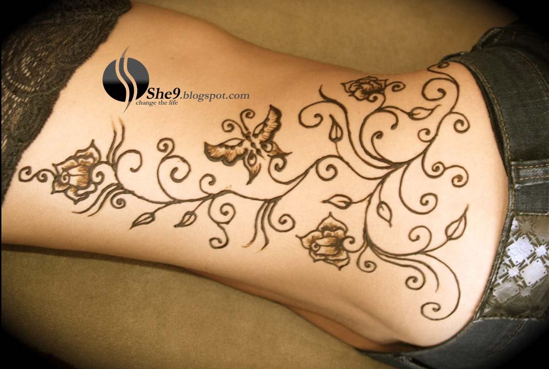 ![Временные Татуировки хной на пояснице]()