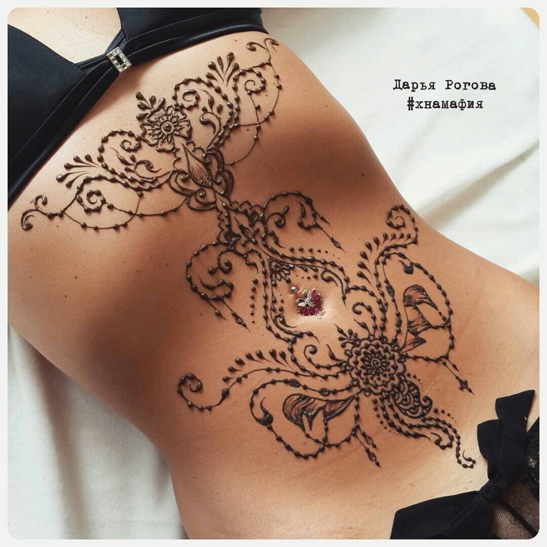 Тату хной на животе