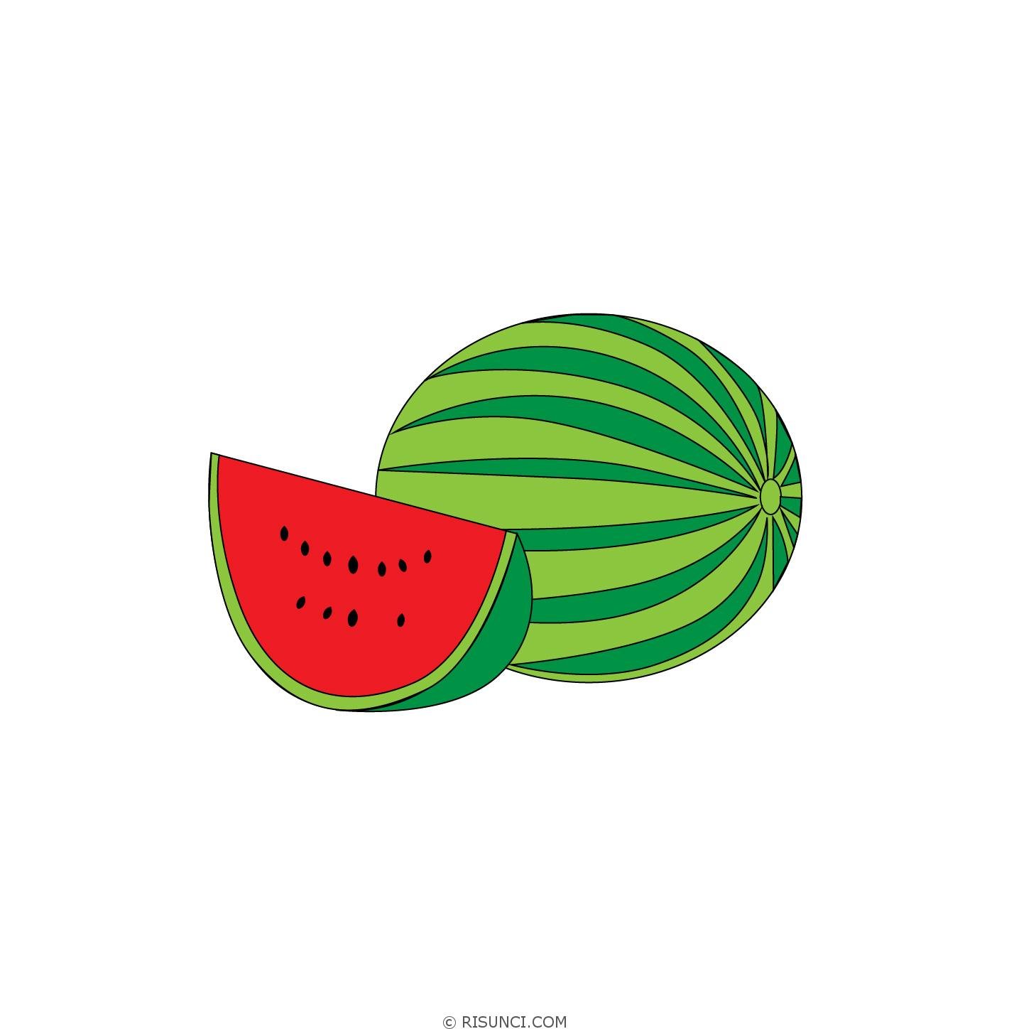 ![Рисунок фруктов карандашом поэтапно Арбуз]()