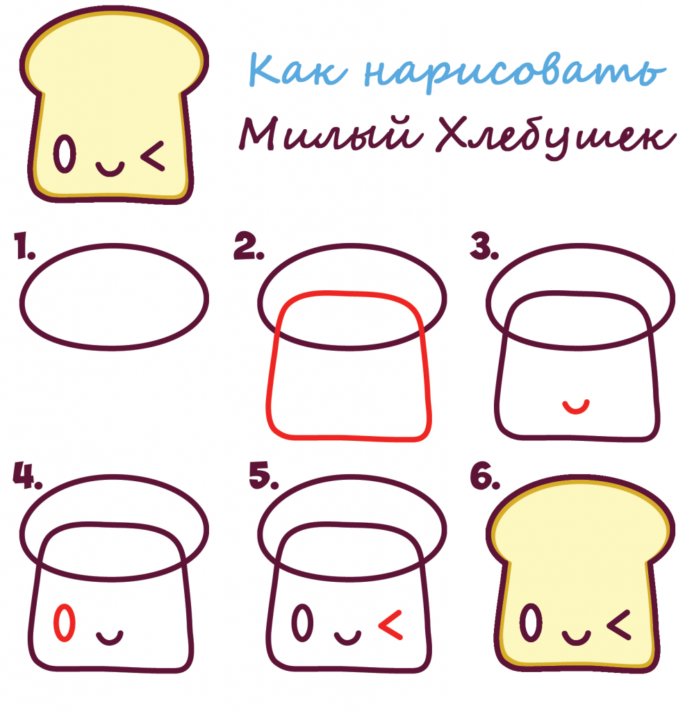 Поэтапное рисование хлеб для дошкольников