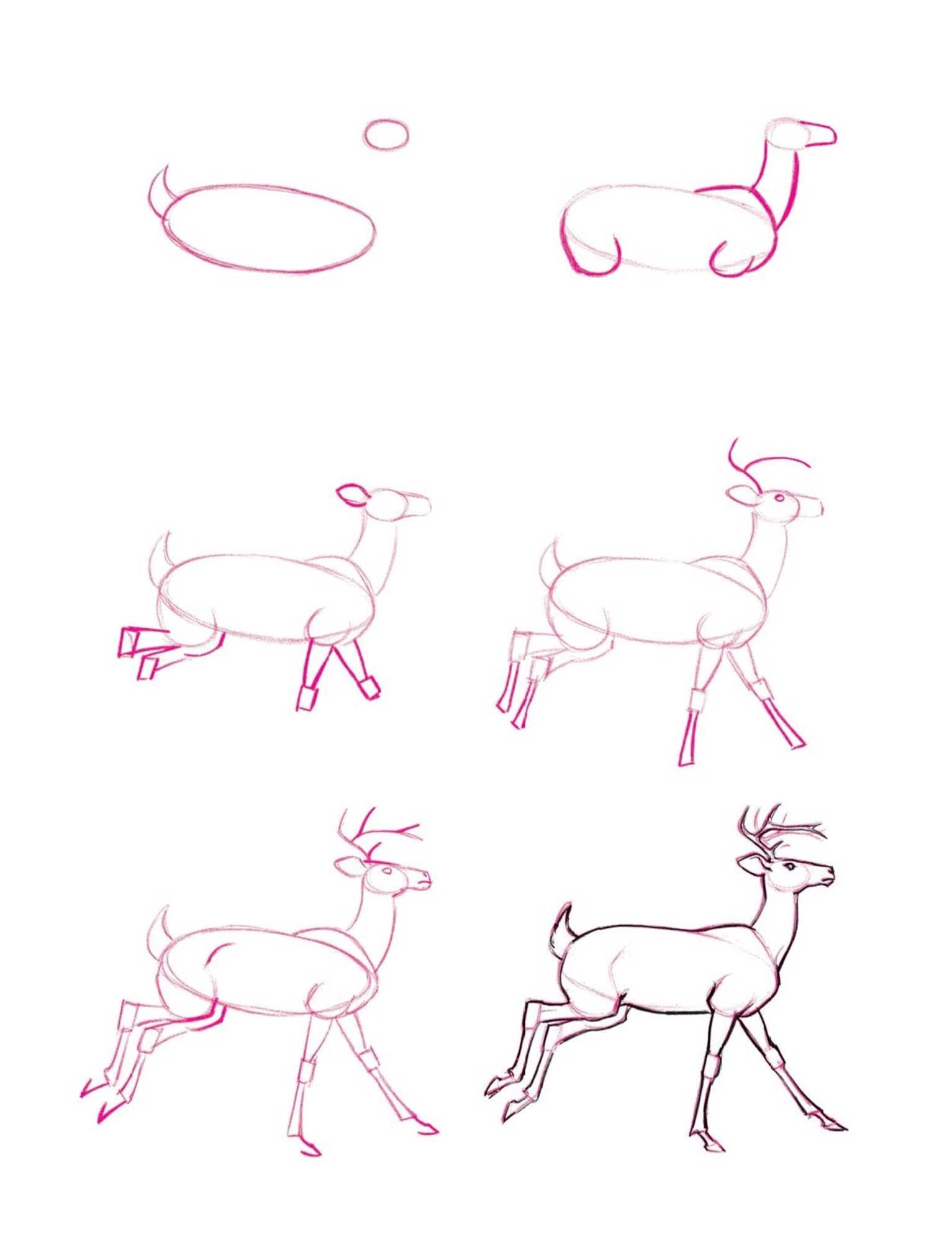 ![Как нарисовать Северного оленя карандашом поэтапно для детей]()