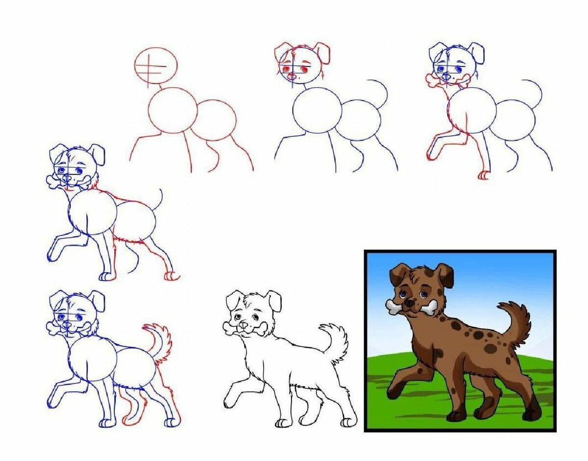 Схема рисования собаки для детей