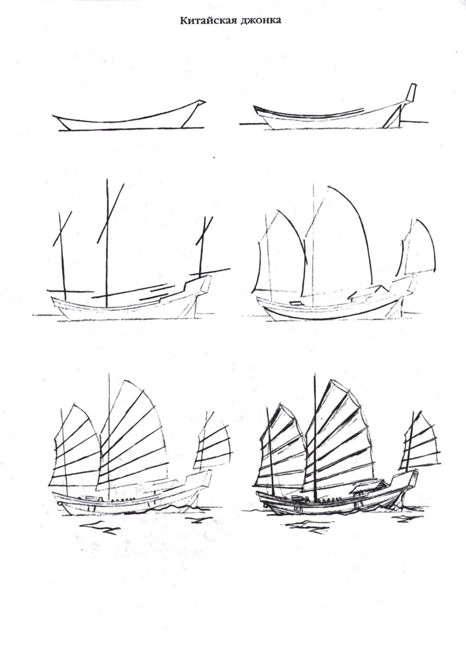 ![Поэтапный рисунок парусника]()