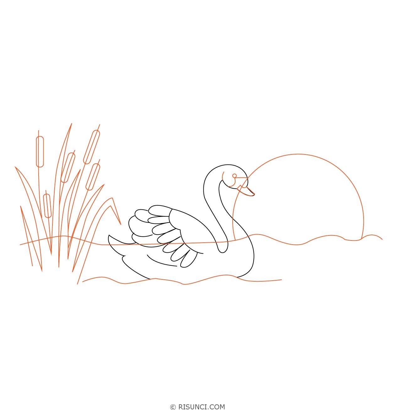 Пошагово рисование лебедя