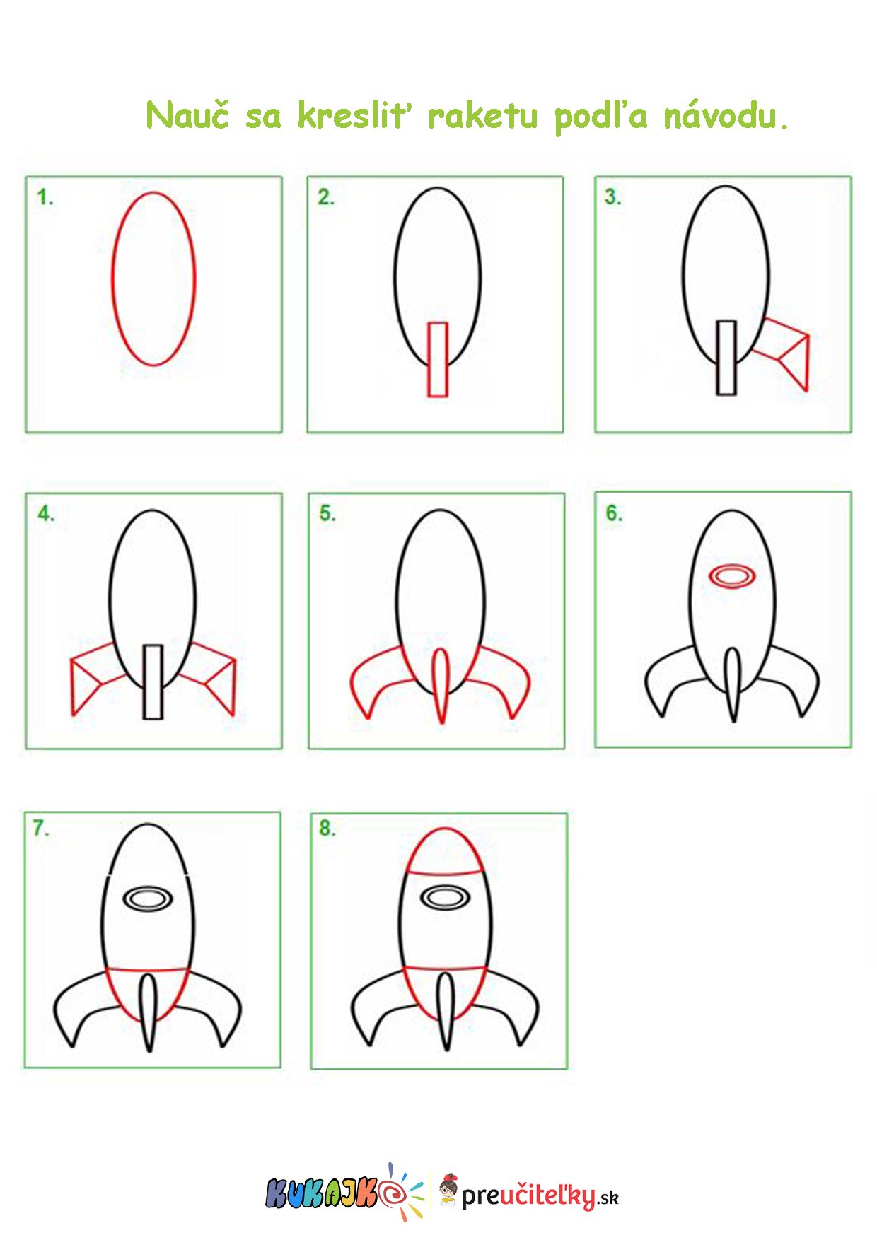 Поэтапное рисование ракеты для детей