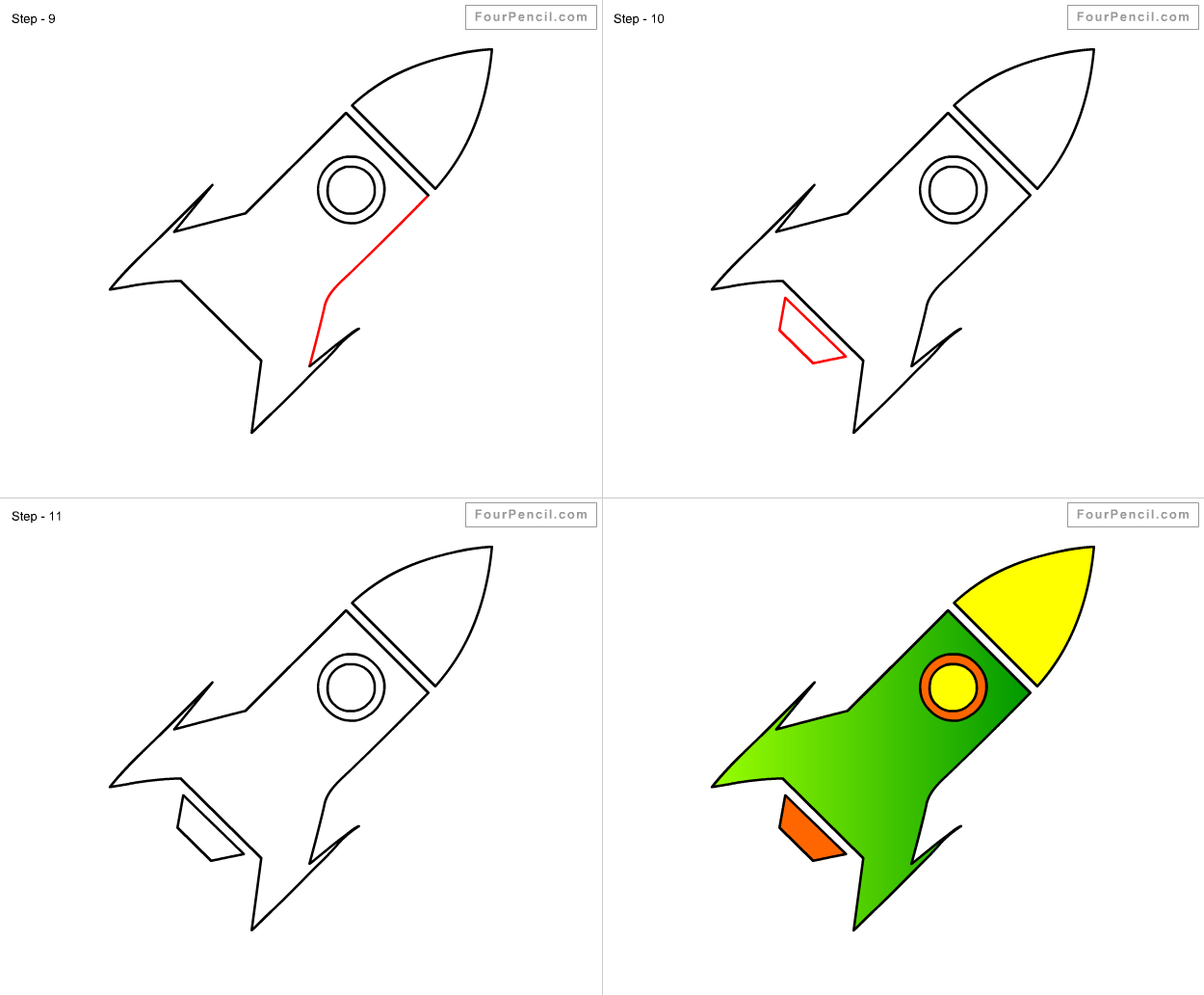 ![Поэтапное рисование ракеты]()
