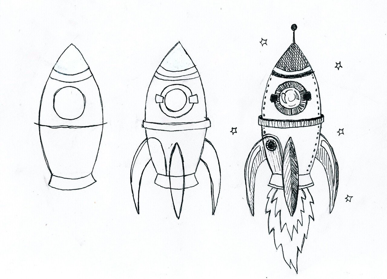 Этапы рисования ракеты для детей