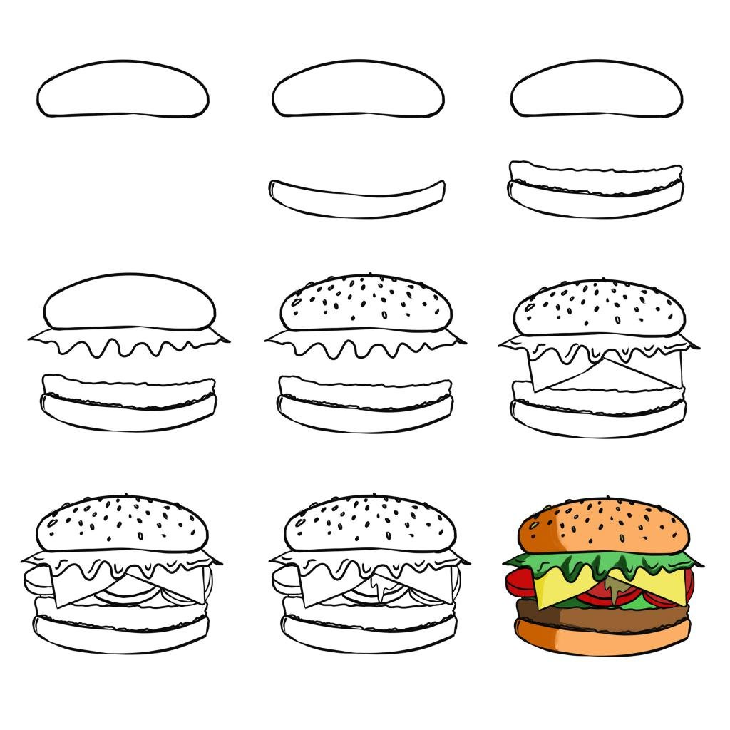 Хотите нарисовать бургер, но не знаете с чего начать? Не волнуйтесь, вам поможет простой пошаговый алгоритм. Сначала нарисуйте овальную форму, которая будет основой для булочки. Затем добавьте два прямоугольника с боковых сторон для верхней и нижней части булочки. Внутри овала нарисуйте круглые котлеты, используя окружности разных размеров. Добавьте соус, сыр, листья салата, помидоры и лук с помощью геометрических фигур. Не забудьте проставить зубочистку или шпажку, чтобы бургер был стабильным. Наконец, дополните рисунок дополнительными деталями, такими как картофель фри или напиток, чтобы создать полноценное изображение вкусного бургера.