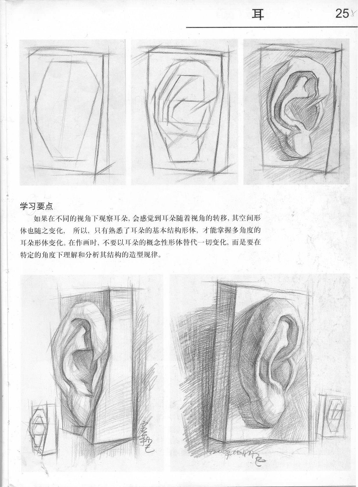 ![Зарисовки ушей карандашом]()