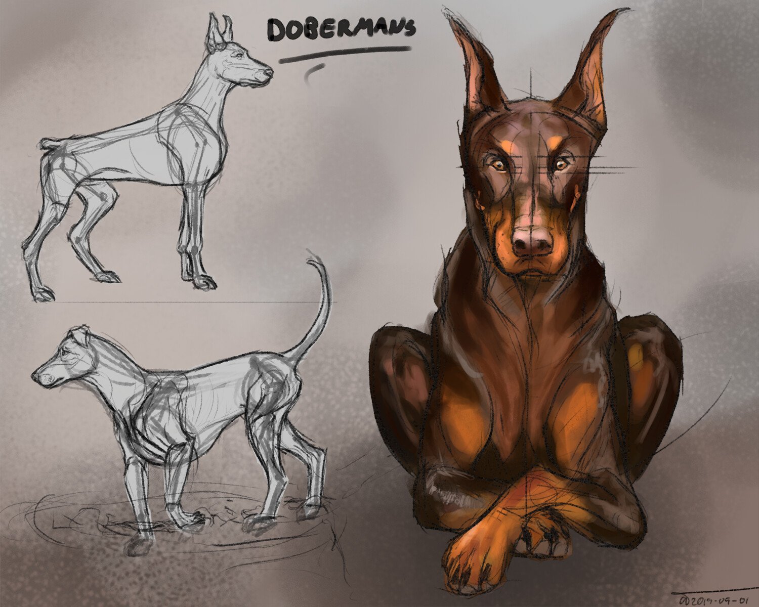 ![Доберман эскиз]()