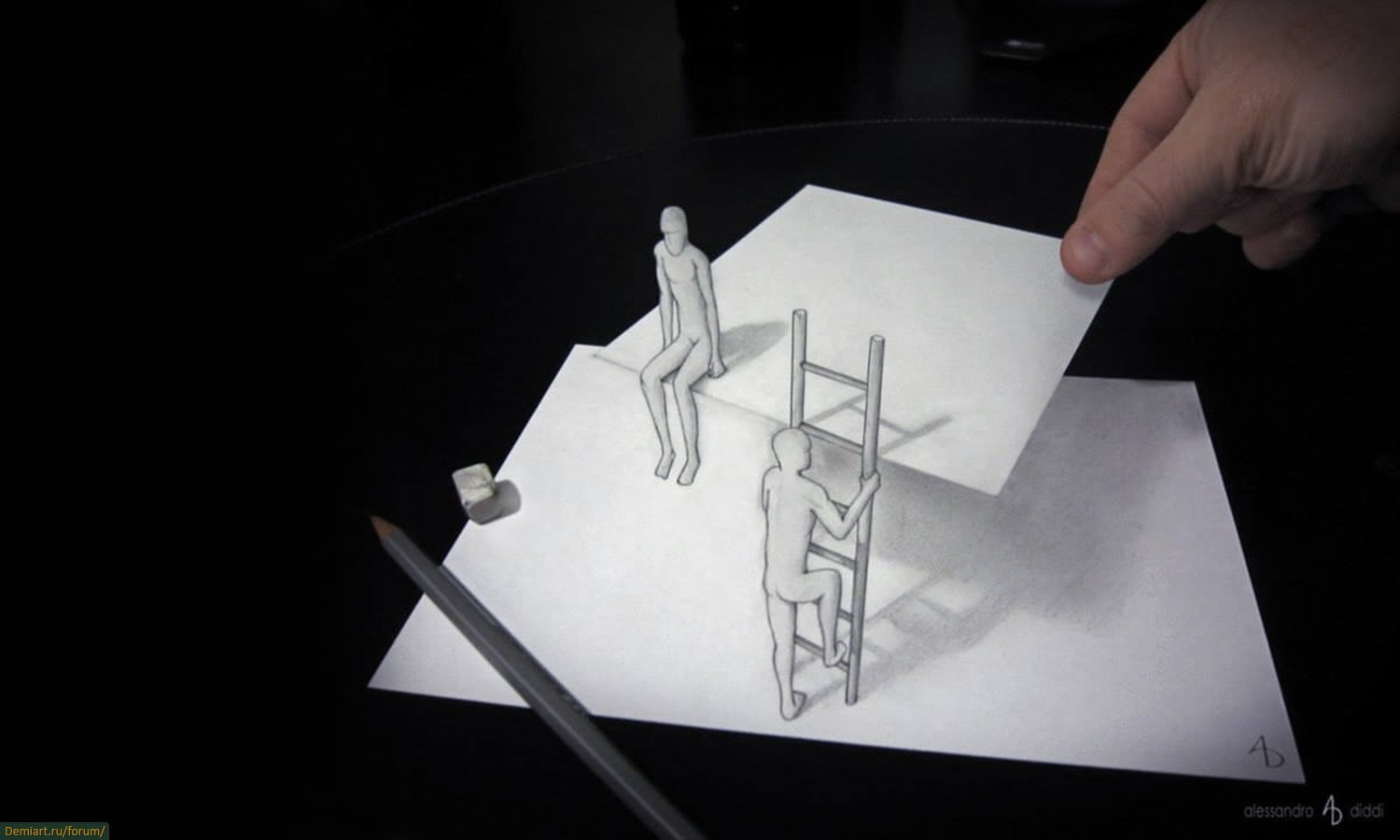 ![Рисунки карандашом геометрические фигуры иллюзии для начинающих]()