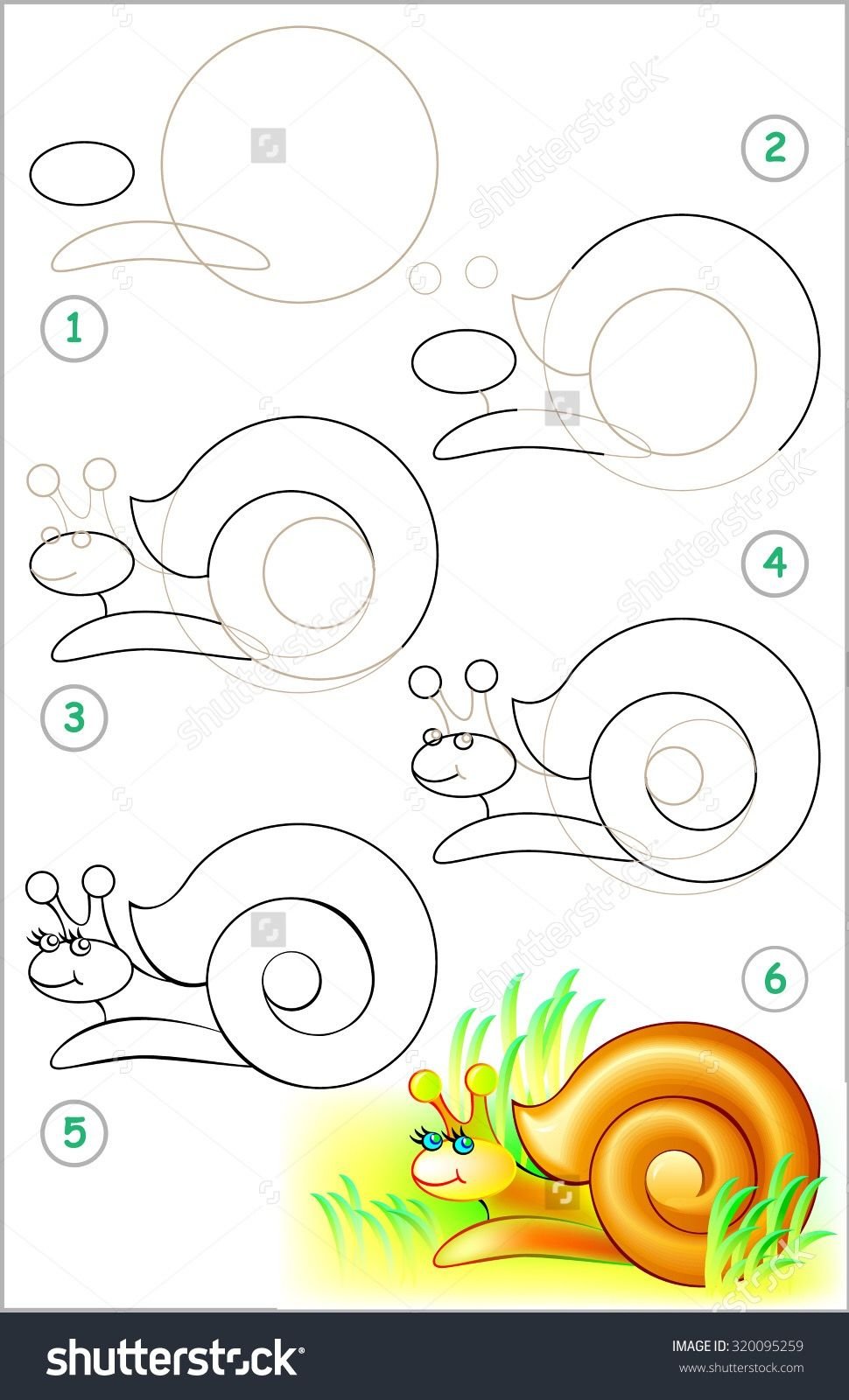 ![Пошаговое рисование улитки]()