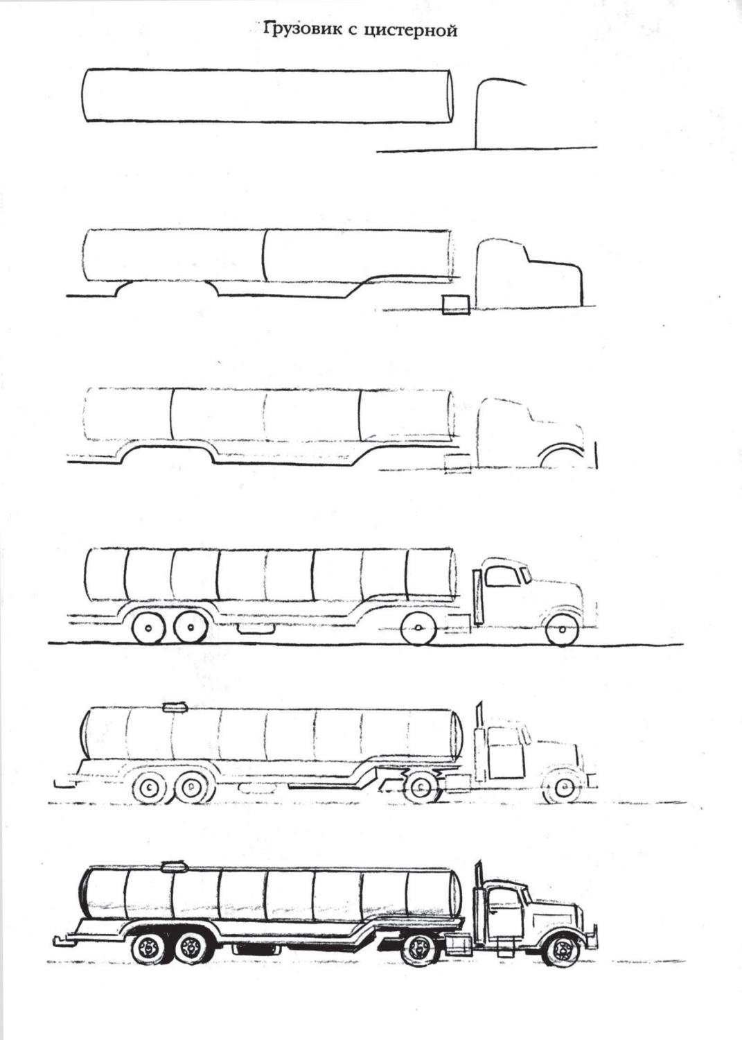 Пошагово рисование машин грузовых