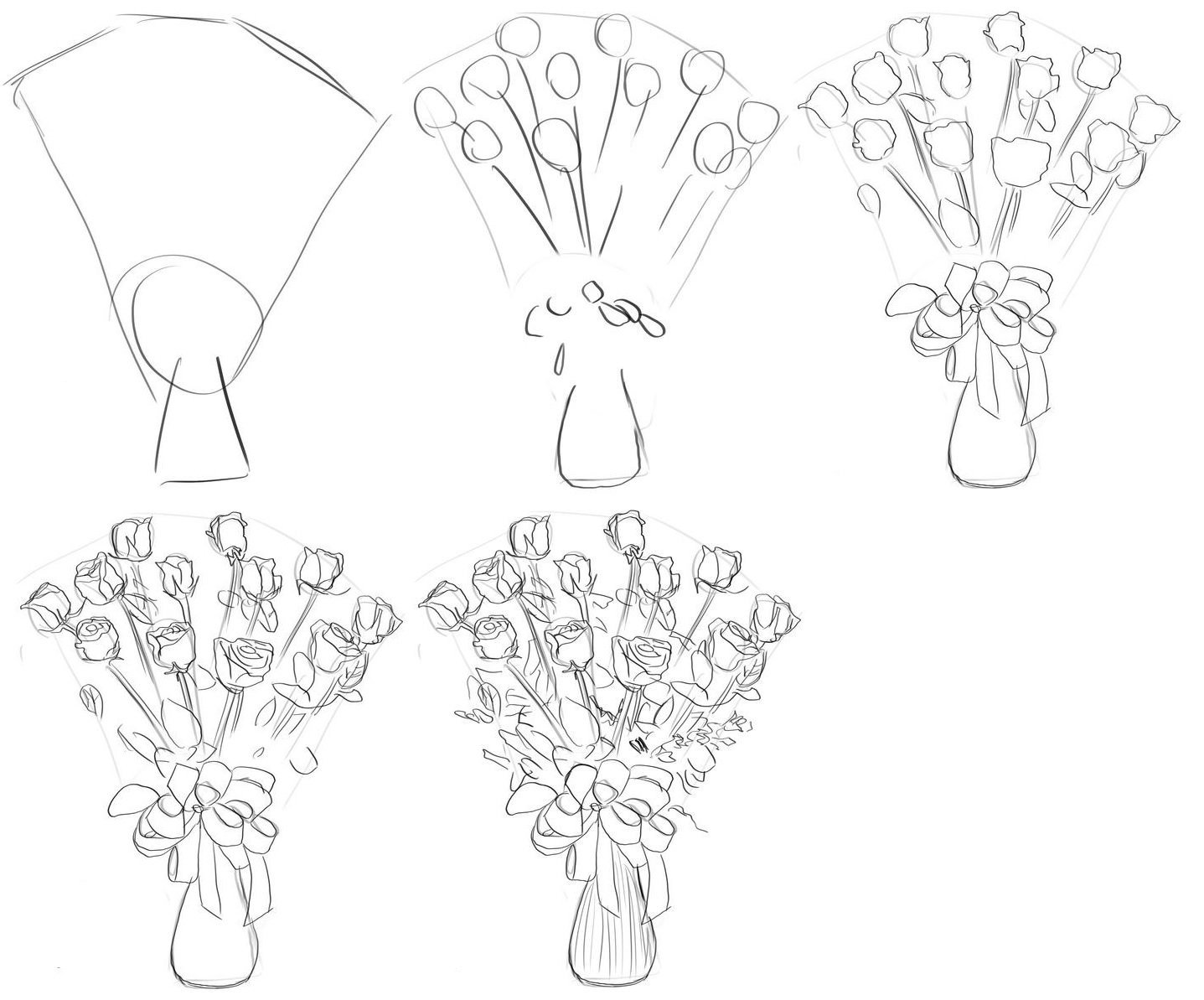 Хотите нарисовать красивый букет, который будет радовать глаза своей яркостью и жизнерадостностью? Вам потребуется всего лишь немного творчества и легких движений руки. Выберите цвета, которые хотите использовать, и начинайте рисовать каждый цветок по очереди, добавляя детали и объемность. Не забывайте о стеблях и листьях, которые придают композиции естественность. Используйте разные техники рисования, чтобы создать эффекты тени и света, делая букет более реалистичным. В итоге вы получите уникальную картину, которая станет прекрасным украшением вашего интерьера или подарком для близких людей.