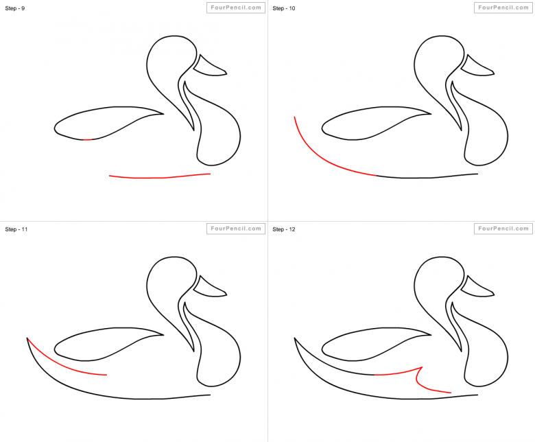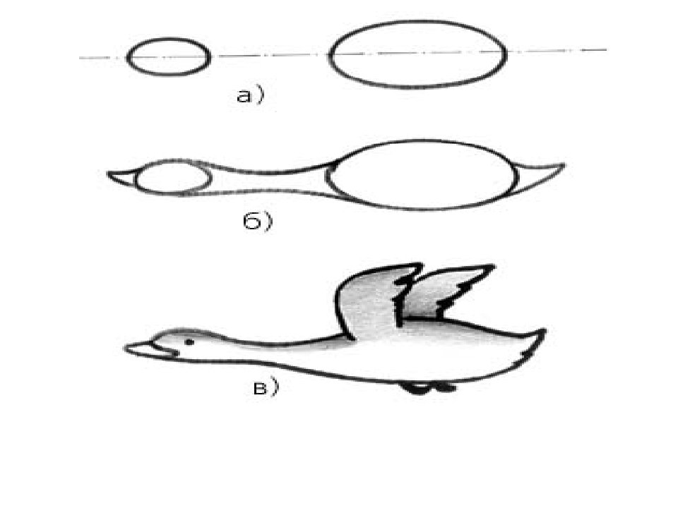 Поэтапное рисование плавающего гуся