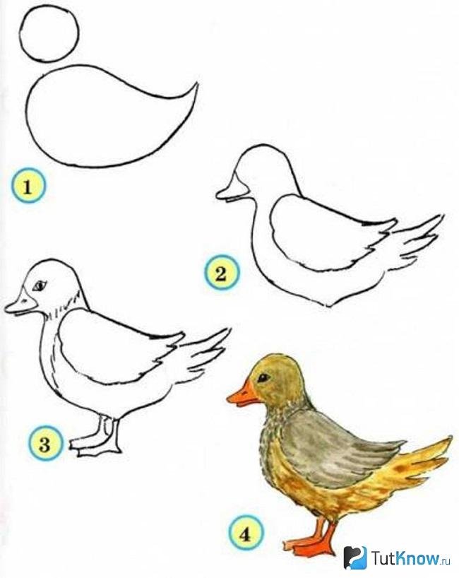 Утка поэтапное рисование для детей