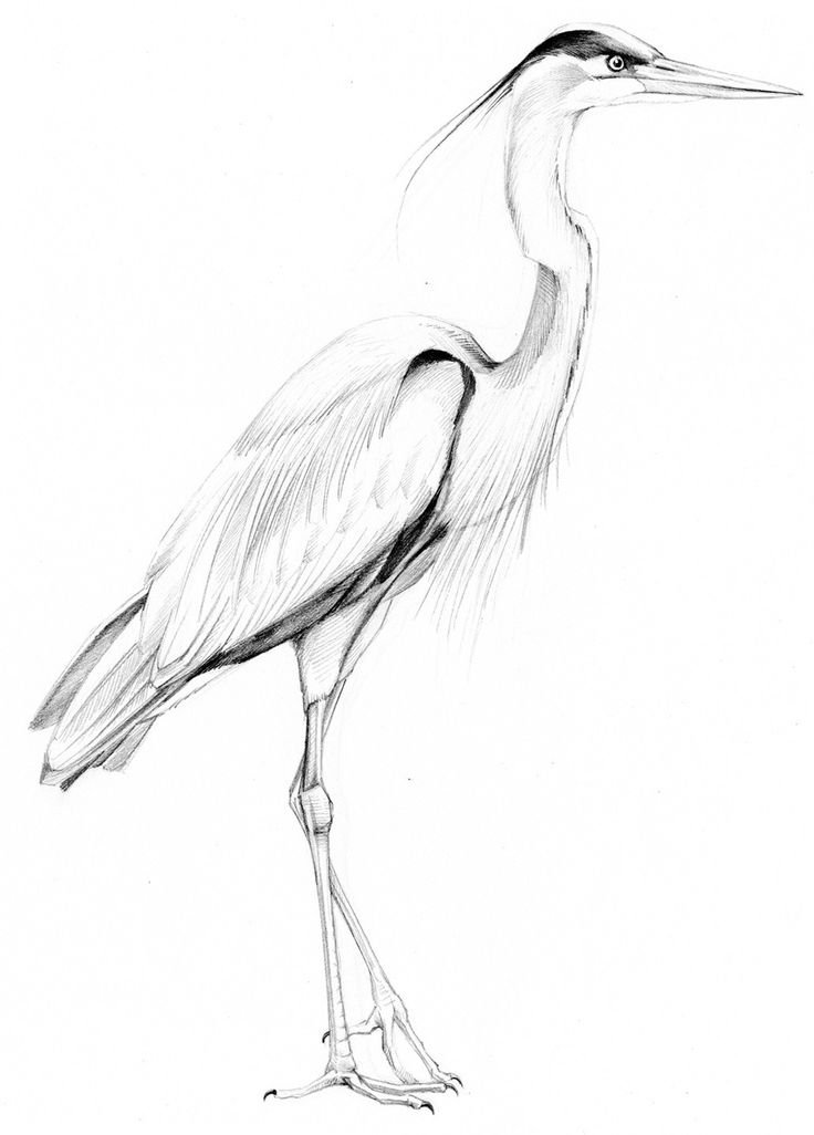 Цапля рисунок для детей карандашом