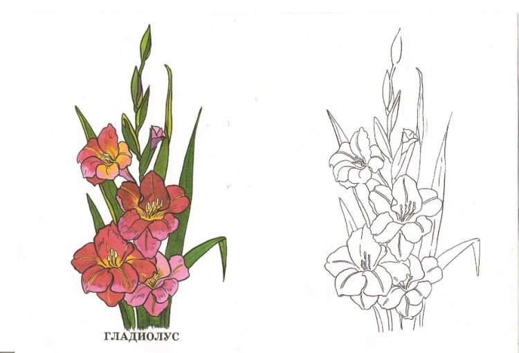 ![Раскраски цветы гладиолусы]()