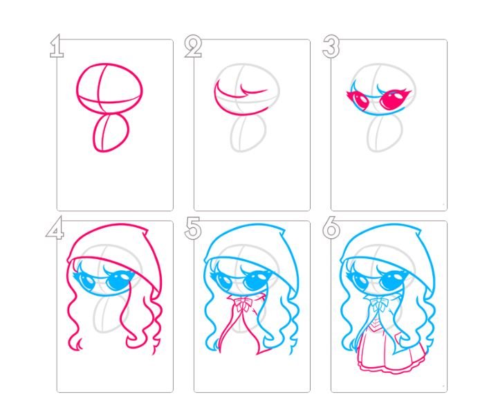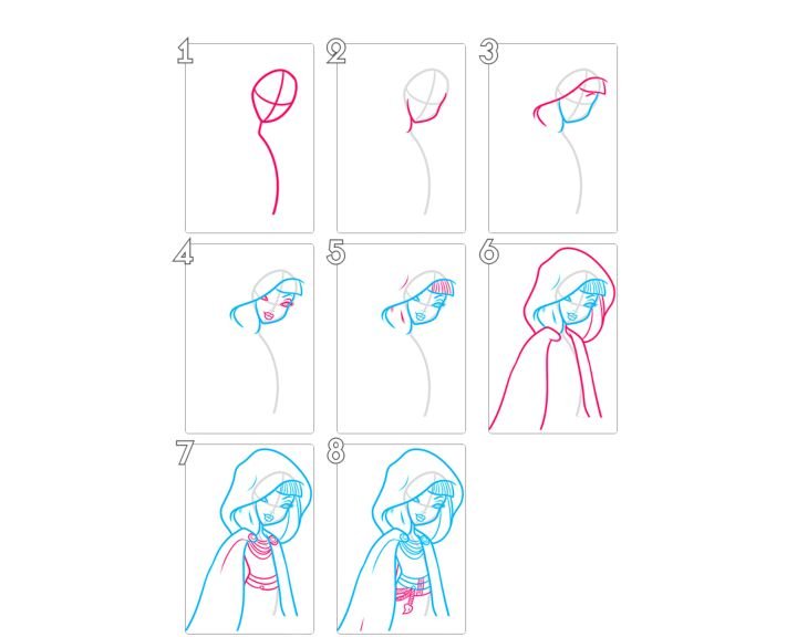 ![Рисуем красную шапочку поэтапно]()
