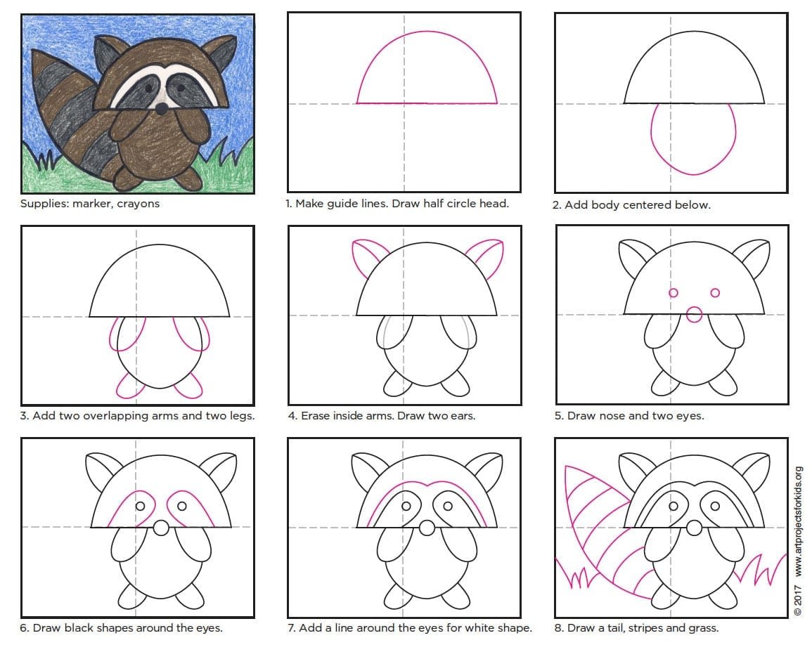 ![Поэтапный рисунок енота]()