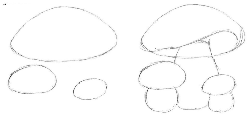 Поэтапное рисование грибов