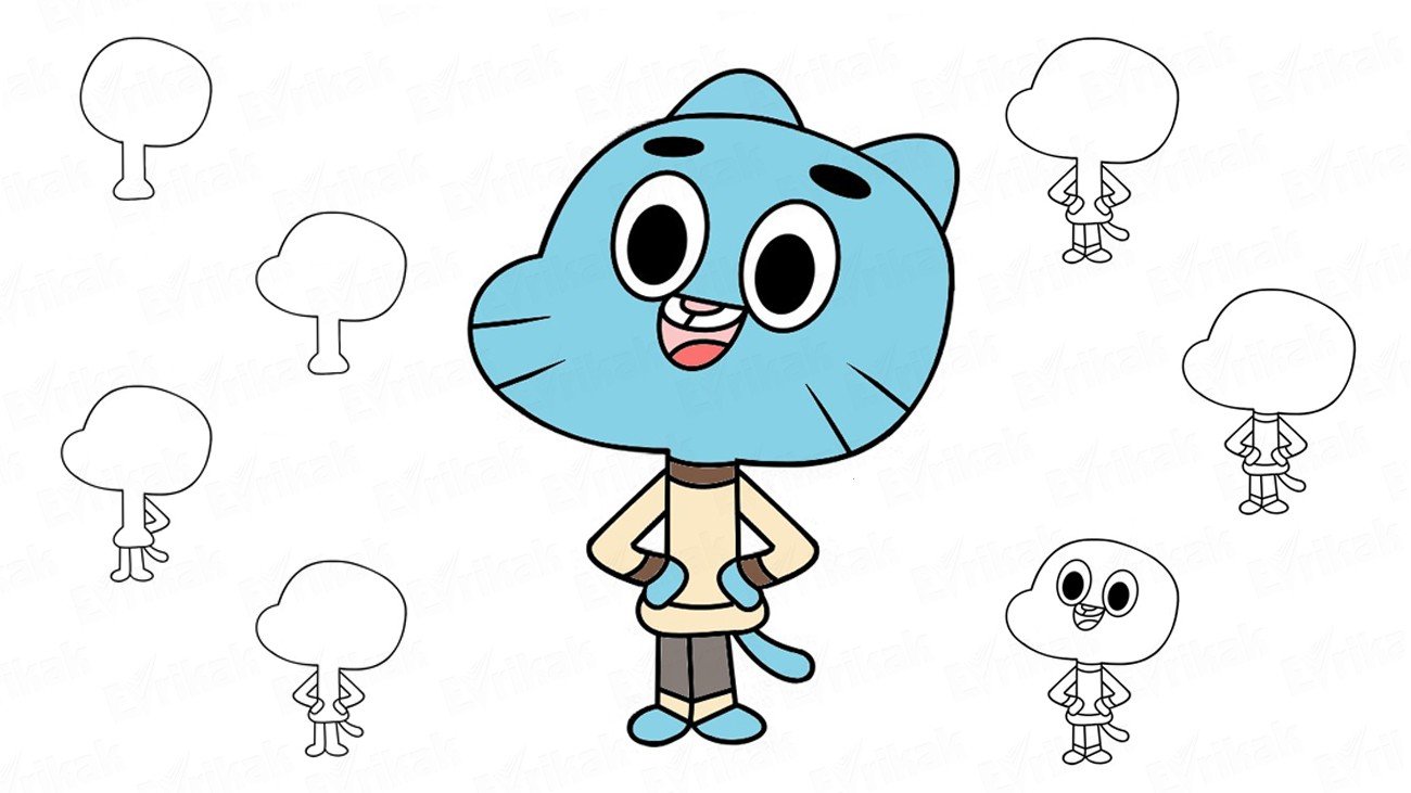 ![Дарвин из удивительного мира Гамбола карандашом]()