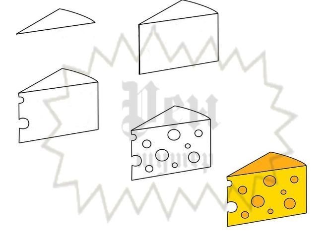 ![Как нарисовать сыр поэтапно]()