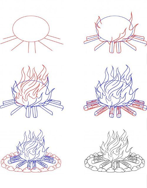 ![Рисунок костра пошагово]()