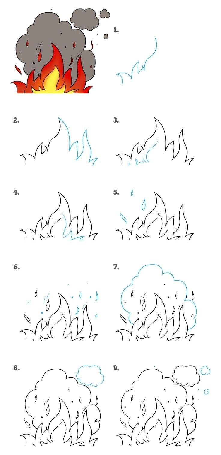 Рисунки огня карандашом для начинающих
