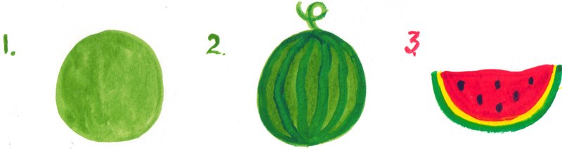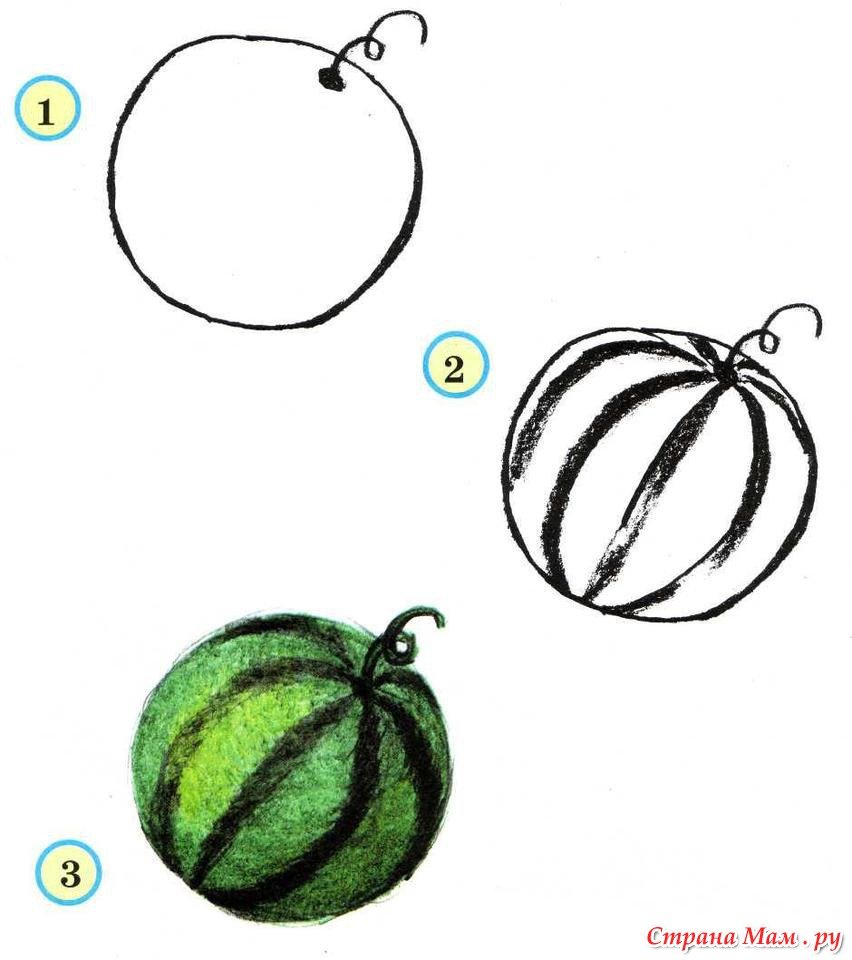 ![Этапы рисования арбуза]()