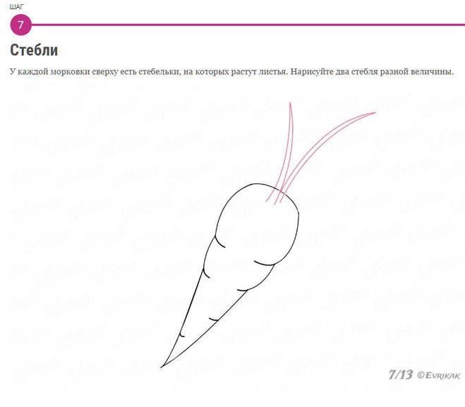 Если вы хотите научиться рисовать морковку, вам потребуется немного терпения и умение следовать инструкциям. Начните с прорисовки основной формы морковки – овальной головки и длинной конусообразной части. Затем добавьте листочки сверху морковки, придающие ей больше реалистичности. Вы можете использовать карандаши, маркеры или акварельные краски для окрашивания морковки в яркий оранжевый цвет. И не забудьте добавить тень, чтобы создать объем и глубину. Постепенно практикуясь, вы сможете достичь желаемых результатов и нарисовать красивую морковку со всеми ее деталями и оттенками.