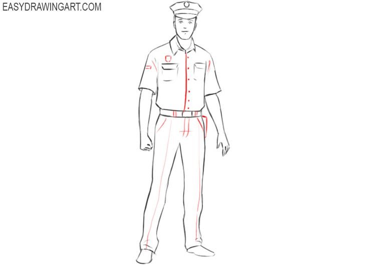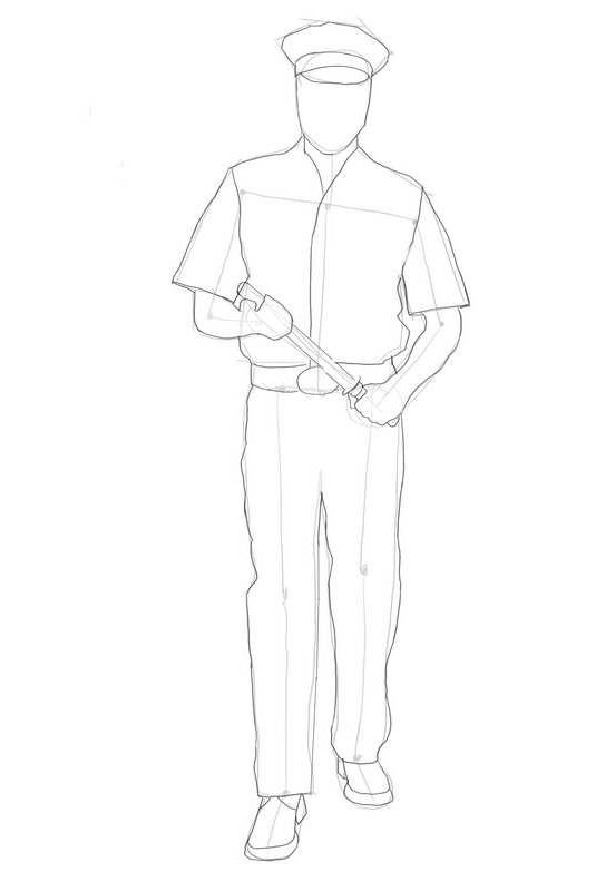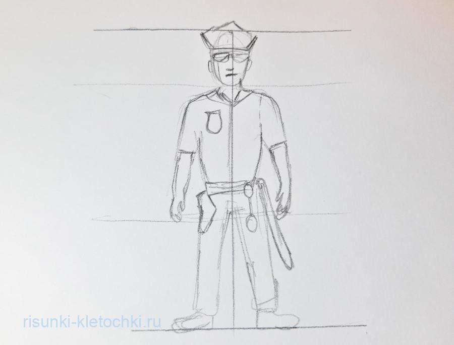 Нарисовать полицейского карандашом
