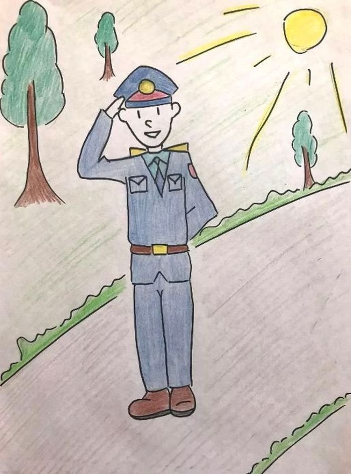 ![Детский рисунок полицейского]()