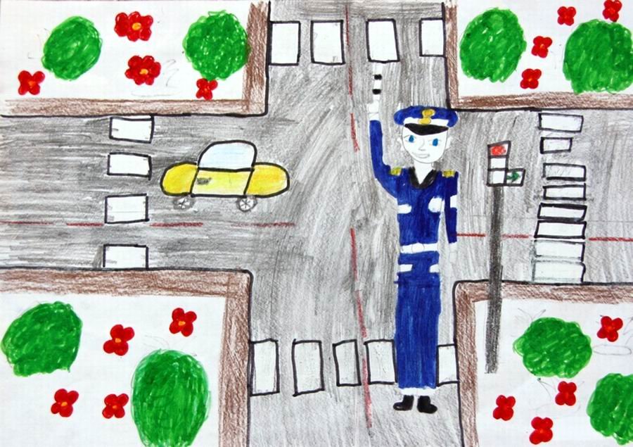 Рисование полицейский на дороге в средней группе