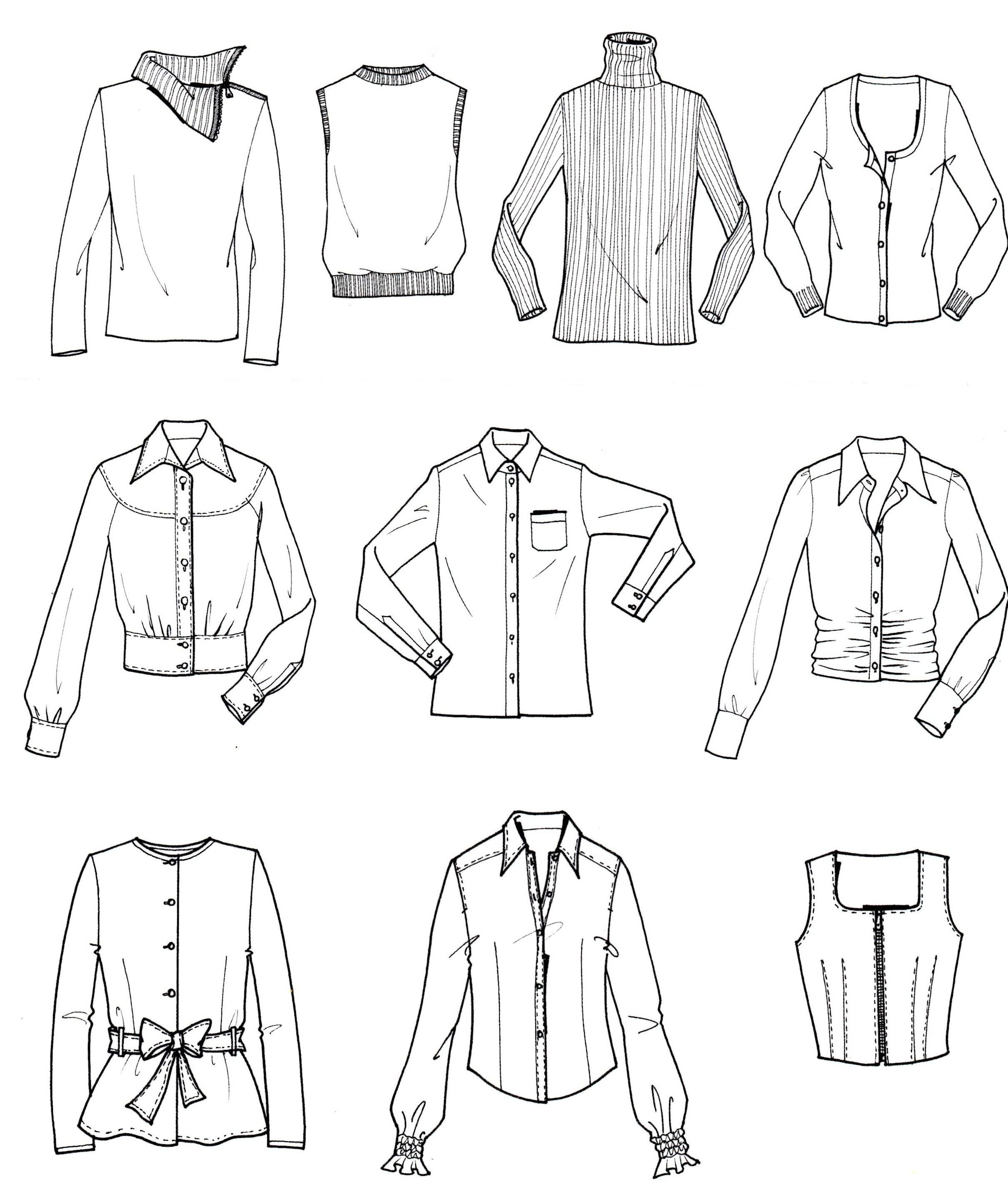 Рисунки одежды карандашом для начинающих кофты
