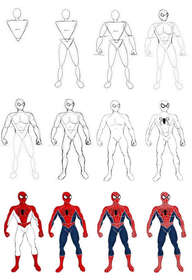 Поэтапное рисование человека паука