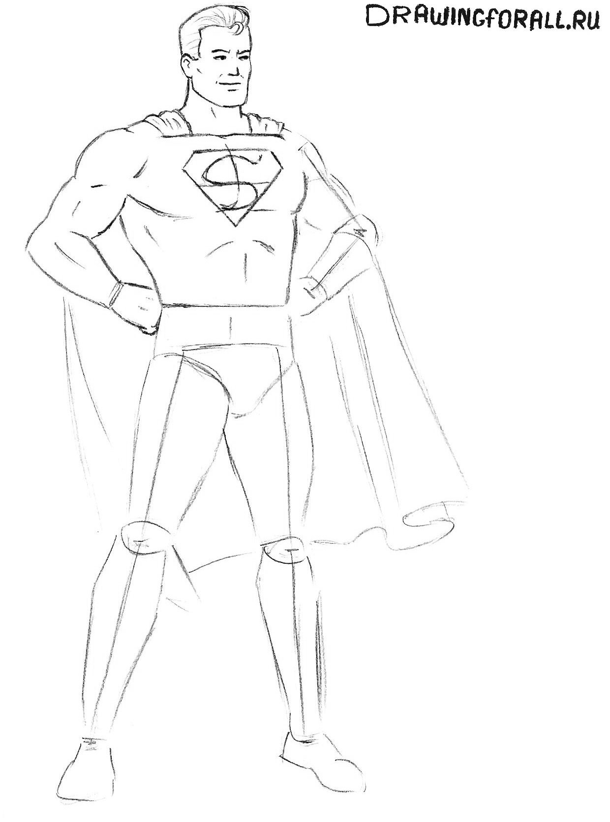![Супермен рисунок поэтапно]()