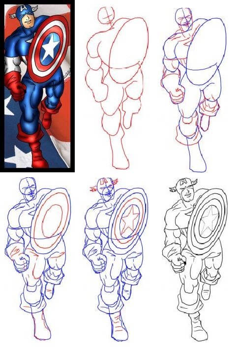 Поэтапное рисование капитана Америки