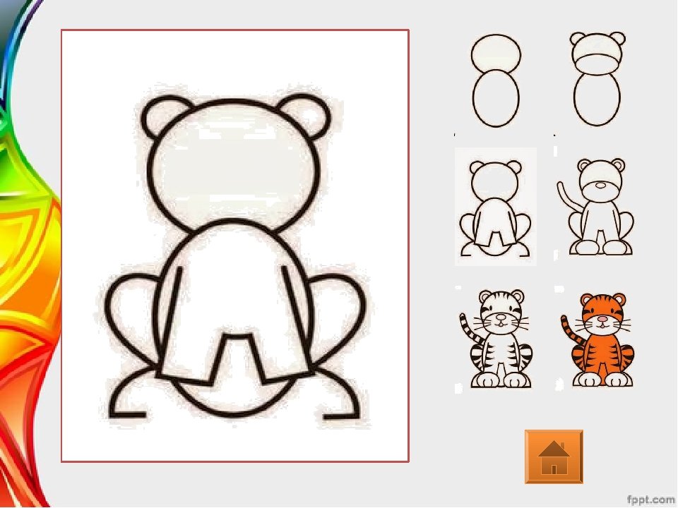 Рисование тигренка для детей поэтапное рисование
