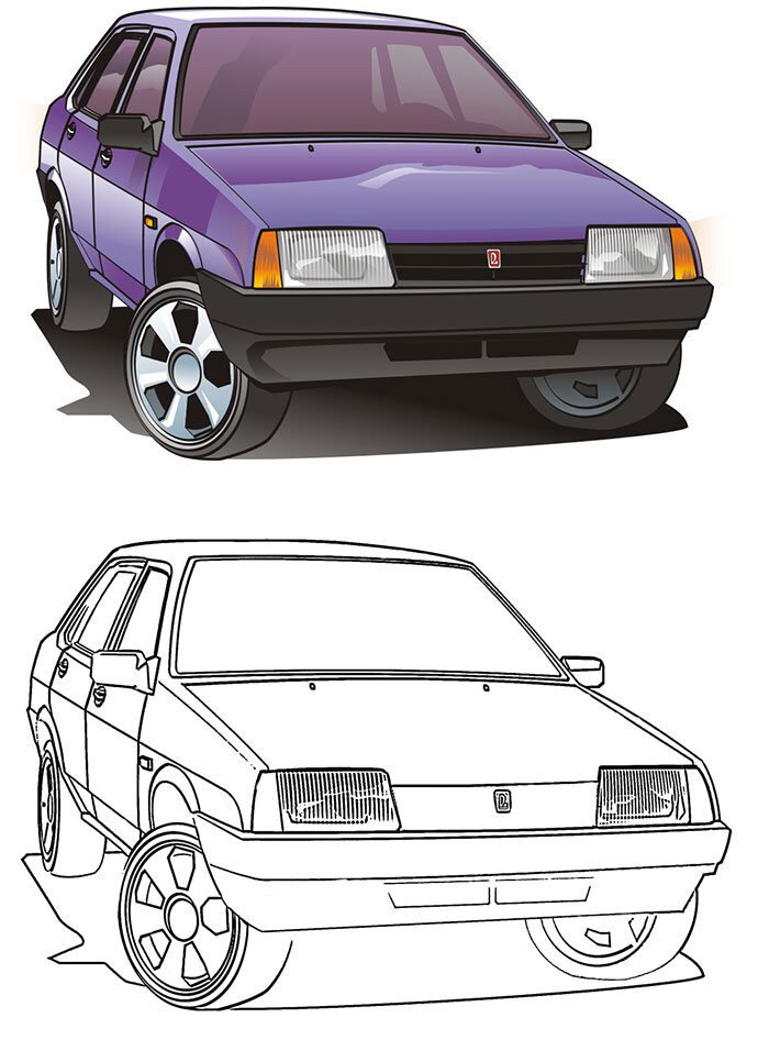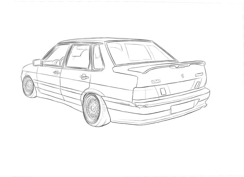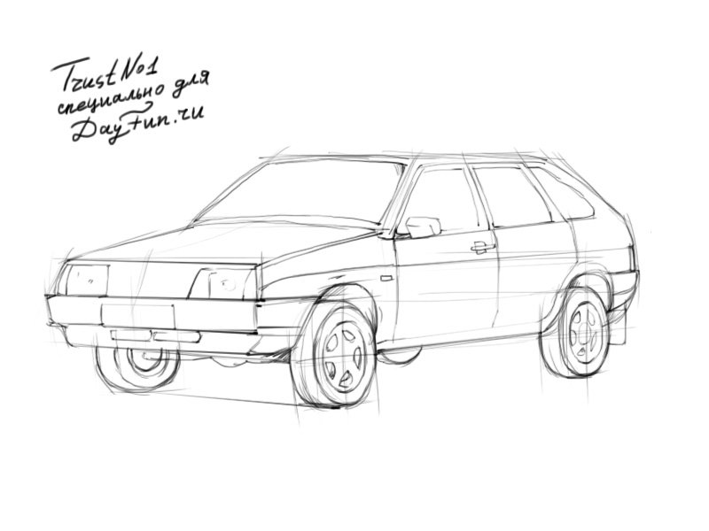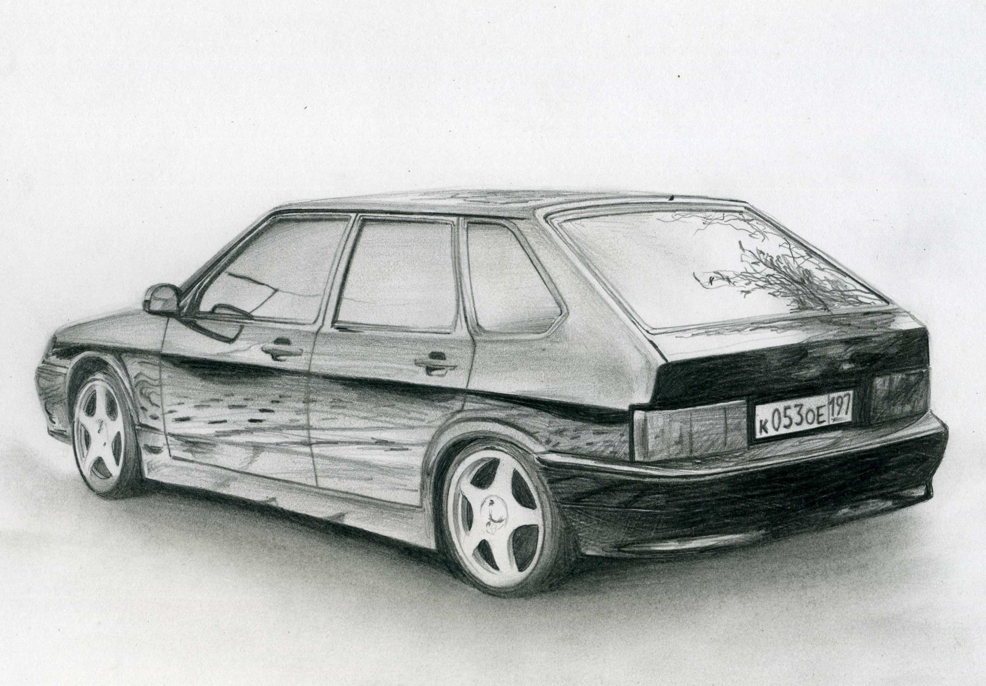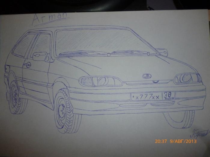 ![Рисунок ВАЗ 2109 карандашом сбоку]()