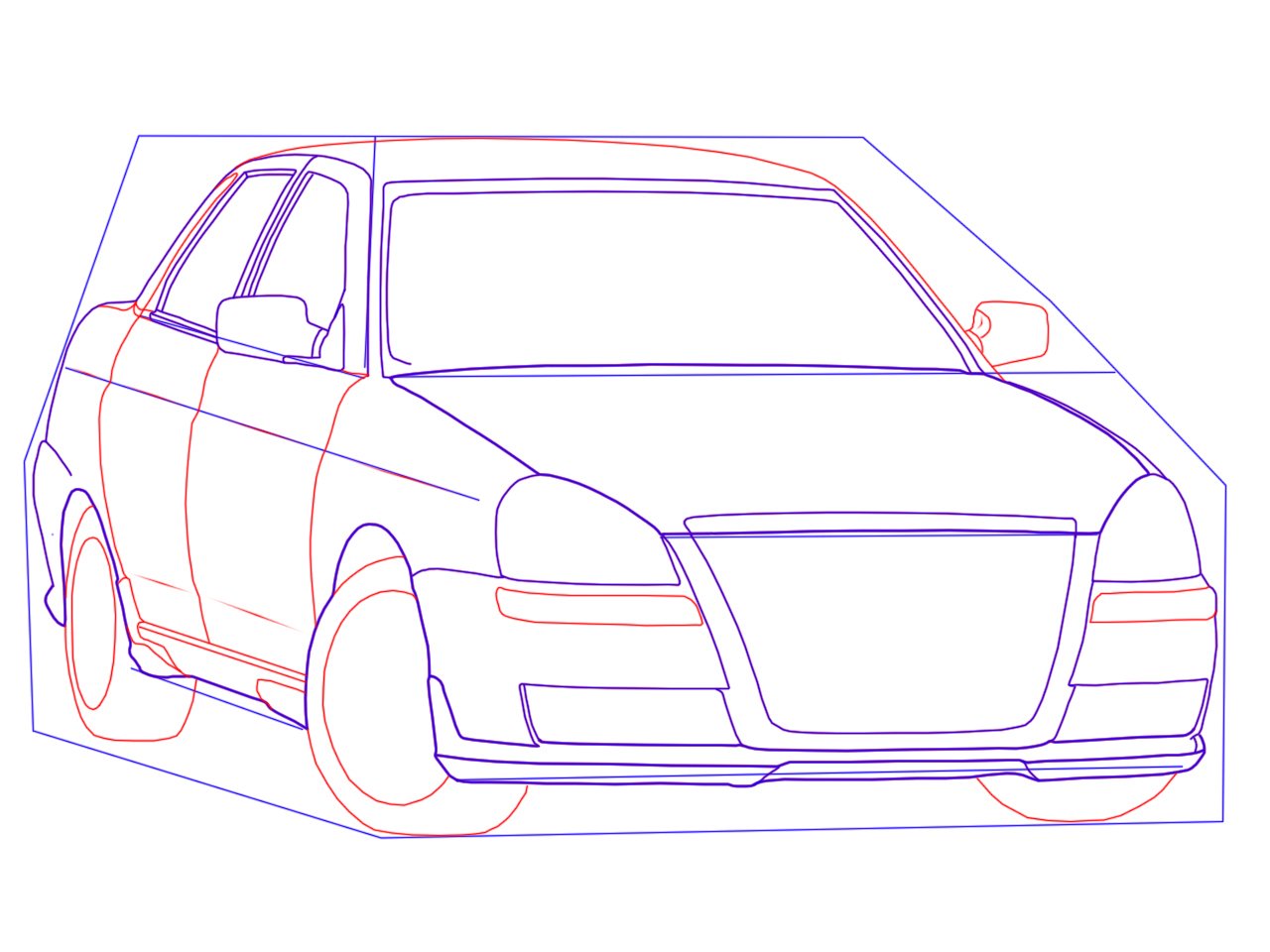 ![ВАЗ 2114 рисунок карандашом спереди]()