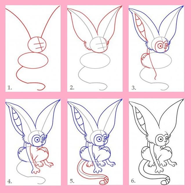![Учимся рисовать МОМО карандашом поэтапно]()