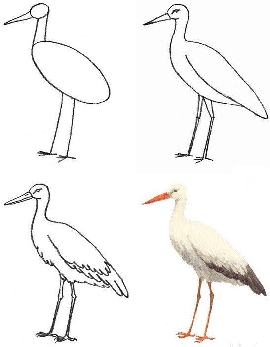 Поэтапное рисование аиста