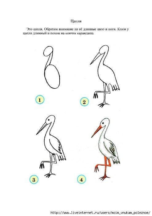 ![Нарисовать цаплю поэтапно для детей]()