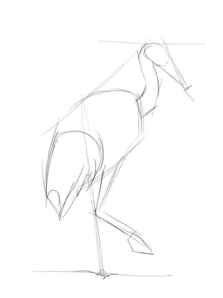 Как нарисовать цаплю карандашом поэтапно