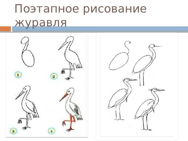 Поэтапное рисование журавля для детей